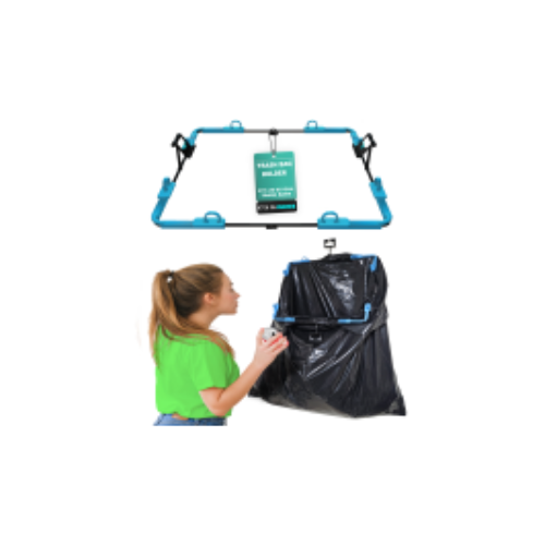 BagEZ trash bag holder keeps your environment clean and organized without bulky trash cans with. It hangs anywhere, fits all bag sizes, takes up no floor space, and is a handy waste management solution for storage, organization, or garbage collection.